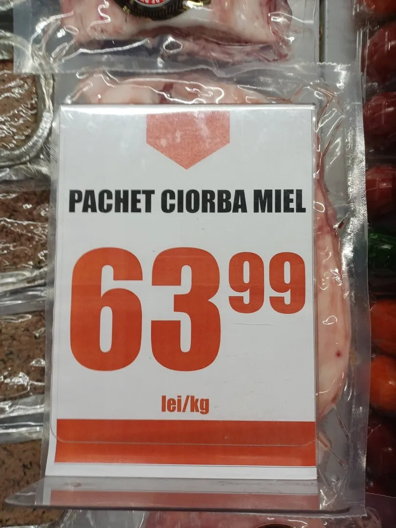 Cine vrea să cumpere un pachet cu carne are de dat enorm de mult. Pentru 2,528 kg, prețul este de 161,76 lei. Pentru cine nu crede, iată și prețul: