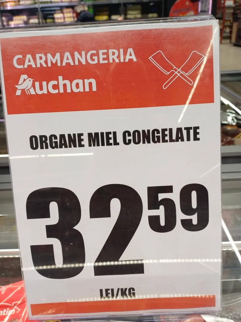 1 kg de organe de miel se vinde în Auchan cu 32,59 lei”, arată APC.