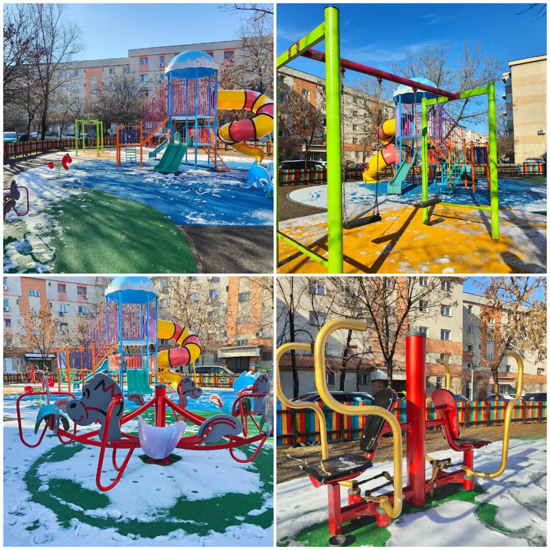 „În cartierul 1 Mai, în zona străzii Popoveni, un spațiu destinat recreerii a fost complet reamenajat, oferind copiilor un loc modern pentru joacă. Au fost instalate structuri noi cu tobogane, leagăne și elemente interactive, iar întreaga suprafață a fost amenajată cu covor elastic, pentru o protecție suplimentară la impact. Spațiul a fost organizat și delimitat corespunzător, pentru a crea un mediu sigur pentru cei mici.