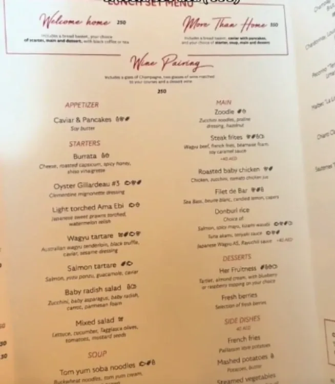 Tânăra a fost cucerită atât de locația de lux, cât și de meniul bogat cu preparate rafinate și de amabilitatea personalului. Românca a povestit că a putut alege dintr-o listă variată de delicatese, printre care tartar de vită, caviar, deserturi, băuturi alcoolice și alte specialități fine: