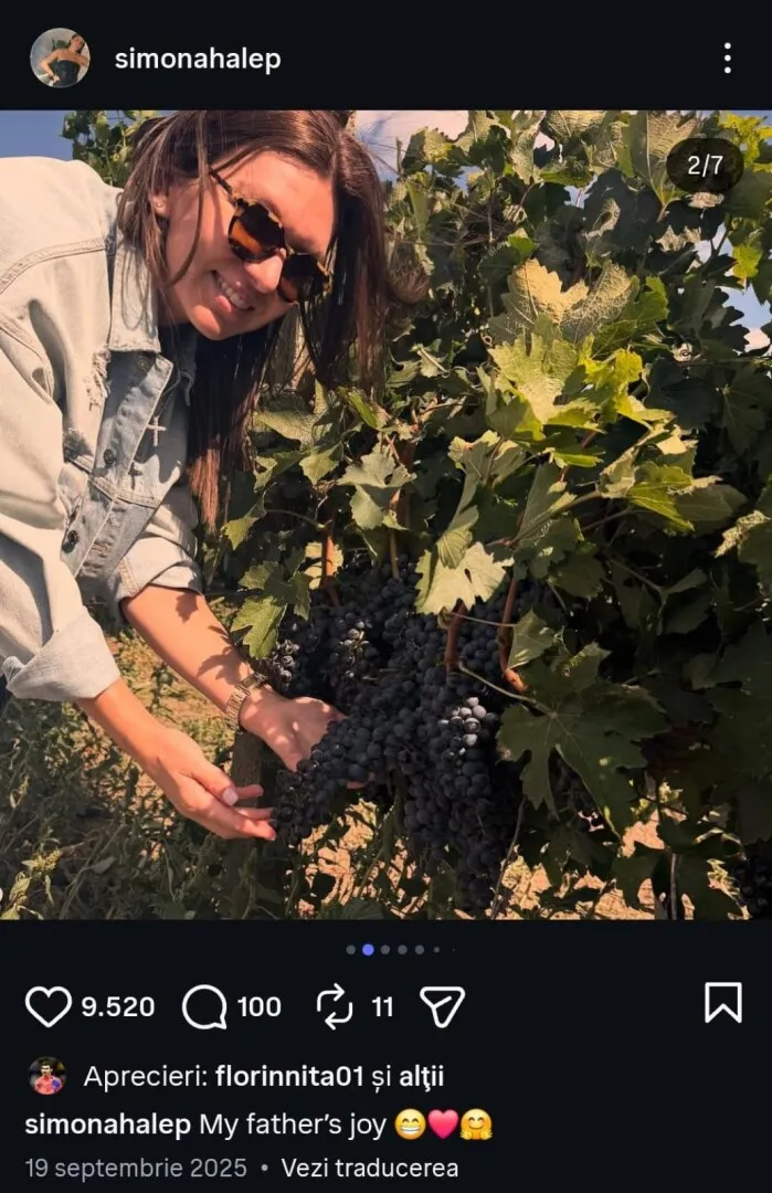 Stere Halep administrează mai multe ternuri viticole. Simona Halep a postat o serie de imagini pe Instagram, cadrele surprinzând cultura de viță de vie, iar ex-sportiva, bucuroasă, a profitat de moment și a gustat din vinul produs de tatăl ei.