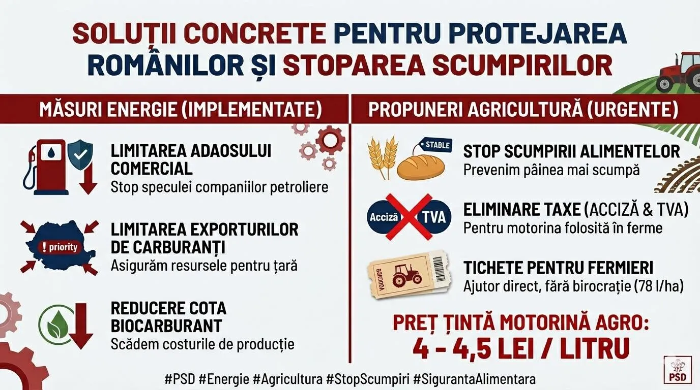 Contextul global este complicat, iar conflictul din Orientul Mijlociu se simte deja direct în bugetul românilor. PSD a înțeles un lucru simplu: când prețul carburantului explodează, totul se scumpește – de la pâine la transportul către serviciu.